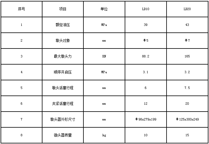 七、LD20型液壓鋼絲鐓頭器裝箱單